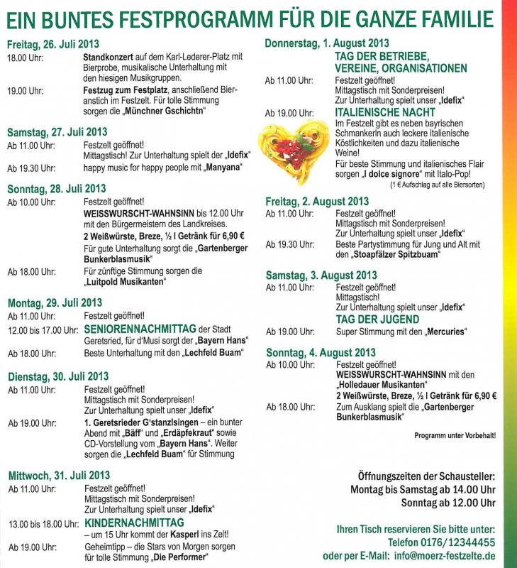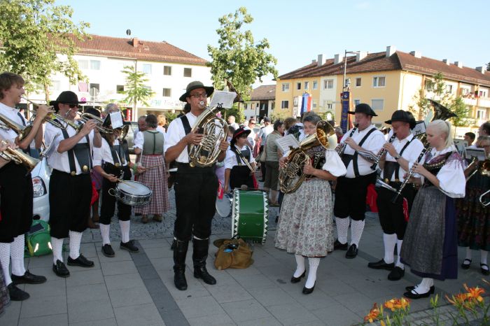 Geretsried, 30.7.2013 – Mit einem Standkonzert auf dem Karl-Lederer-Platz und einem Festzug zum Festplatz an der Jahnstraße begann am Freitagabend das Geretsrieder Sommerfest. Um 19.49 Uhr zapfte Bürgermeisterin Cornelia Irmer mit drei Schlägen das Fass an. Die Band „Münchner Gschichtn“ sorgte anschließend für Partystimmung.