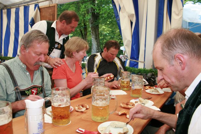 Sonntagvormittag trafen sich zahlreiche Bürgermeister des Landkreises zum traditionellen Weißwurstfrühstück. „Gastgeberin“ Cornelia Irmer freute sich unter anderem über den Besuch von Michael Grasl (Münsing), Michael Bromberger (Eurasburg), Johann Schneil (Sachsenkam) und dem Landtagsabgeordneten Martin Bachhuber. Landrat Josef Niedermaier zeigte sich von seiner sportlichen Seite und radelte trotz hochsommerlicher Temperaturen von  Bad Tölz nach Geretsried. Als sich der Weißwurstvorrat dem Ende zuneigte, half Eglings Zweiter Bürgermeister Hubert Oberhauser aus. Ein Anruf in der heimischen Metzgerei genügte, um diesen Mangel schnell zu beheben.