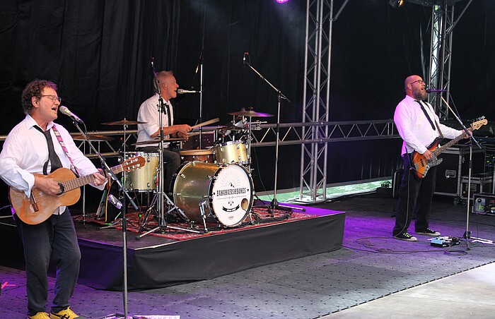 Das fesche Bühnenoutfit von Peter Horn (Gitarre), Florian Rein (Schlagzeug) und Sebastian Horn (Gitarre und Gesang) erinnerte an das Plattencover ihres 1997 veröffentlichten Albums „Viva Conputa", das die Band nun im blauen Vinyl wiederveröffentlicht hat und auch am Fluss-Festival-Stand verkaufte. Ins Schwitzen kam das Trio zunächst nicht. Lässig-entspannte Songs wie „Bum" und „I like a lot" lockten zunächst nur wenige Fans auf die Tanzfläche. Dies änderte sich nach der Konzertpause schlagartig. Zu gefallen wusste vor allem die Cure-Coverversion „Just like heaven" sowie Ausflüge in funkige und vom Techno beeinflusste Soundwelten.