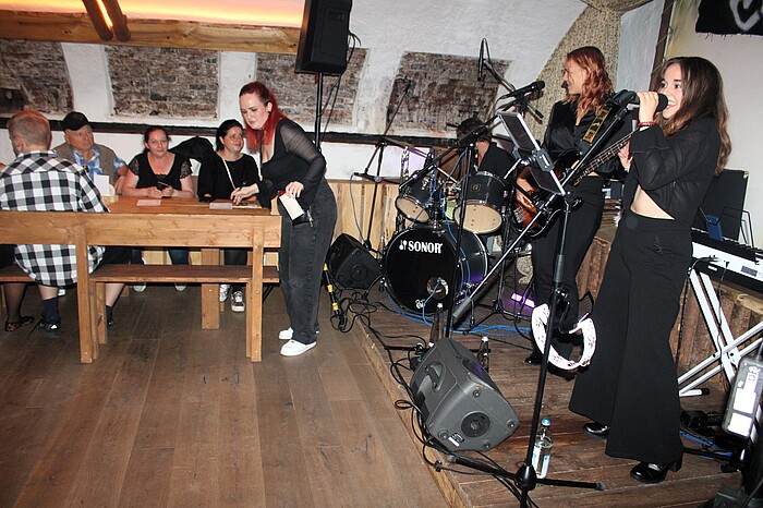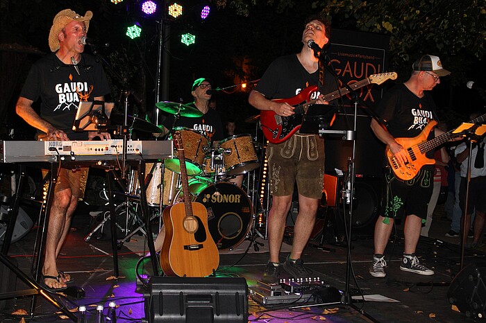Eine große Menschenmenge zog es an die alte Floßlände zum Open-Air-Konzert der jungen Band Merged. Sängerin Laura Dessel und ihre männlichen Gefährten ließen sich nicht einmal von einem vorübergehenden Stromausfall bremsen und legten sich unter anderem mit Hardrock von AC/DC bis Nirvana voll ins Zeug. Bekannte Schlager und Popsongs, die auch in den Bierzelten des Oktoberfestes gerne gehört werden, präsentierten Gaudibox im Flößereibiergarten. Dort hatte das Wirtepaar Ramona und André Seibicke eine zusätzliche Bar aufbauen lassen. Ins Schwitzen kamen die Fans von Cindysiza im Keller der Burgschenke und die Lokalmatadoren von G-Mahde Wies‘n im Gasthaus „Zum Löwenbräu“. Im „Cristallo“ gingen auch während des Konzerts von Scratch Mark & Fake Rayban noch erfrischende Eiskugeln über den Tresen.