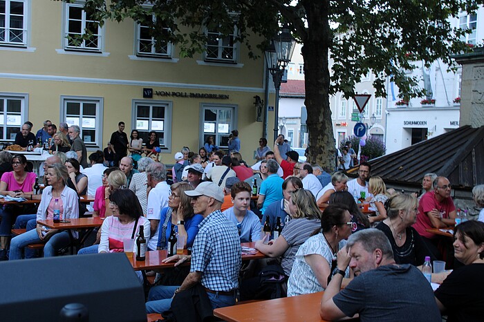 Bürgermeister Klaus Heilinglechner schlenderte als einer der ersten Gäste durchs Museum am Untermarkt und lauschte dort den dezenten Harfenklängen von Geli Huber. Die Eurasburgerin ließ zwischendurch auch Kinder an ihrem Instrument zupfen. Deutlich lauter spielte kurz darauf die sechsköpfige Formation 4 + x auf der Bühne am Marienplatz ihre Coverhits aus den 1960er und 1980er Jahren. An anderen Orten griffen die Musiker und DJs zwar erst kurz vor Einbruch der Dunkelheit ins Geschehen ein. Die Tische in den Biergärten der Gaststätten Flößerei, Athos, Rat.Haus.Café, Biermühle und Grüner Baum waren dennoch schon vor den Auftritten weitgehend besetzt. Einzig vor der Puzzles-Bar am Hans-Urmiller-Ring blieb der Andrang beim Konzert von Lidschi & The Melody Makers zunächst überschaubar. „Wir rechnen später mit deutlich mehr Gästen“, gab sich Inhaber Benny Marmetschke gelassen. Schließlich ging die lang erwartete „Season Opening Party“ im benachbarten Turm-Club erst um 22 Uhr los und sollte bis tief in die Nacht dauern.