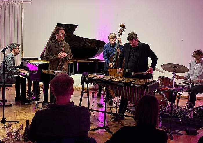 Offene Trommlergruppe "Samba Batedura" probt im Hinterhalt
