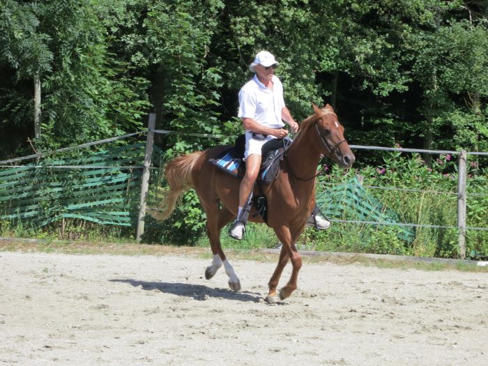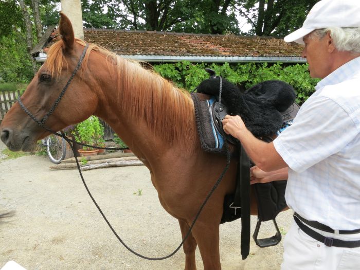 Schließlich heilt auch bei einem Pferd die Zeit die Wunden. Die beiden Freunde haben ihren Rückschlag längst überwunden und sind inzwischen einen großen Schritt weiter. Wir von Oberland.de staunten auf unserem letzten Besuch nicht schlecht, als Gustl ohne Probleme aufsaß, Dhakir entspannt stehen blieb, als die beiden langsam trabten und schließlich mit Reitfreundin Biggy und ihrem American Quarter Horse „Doci“ stolz davongaloppierten.