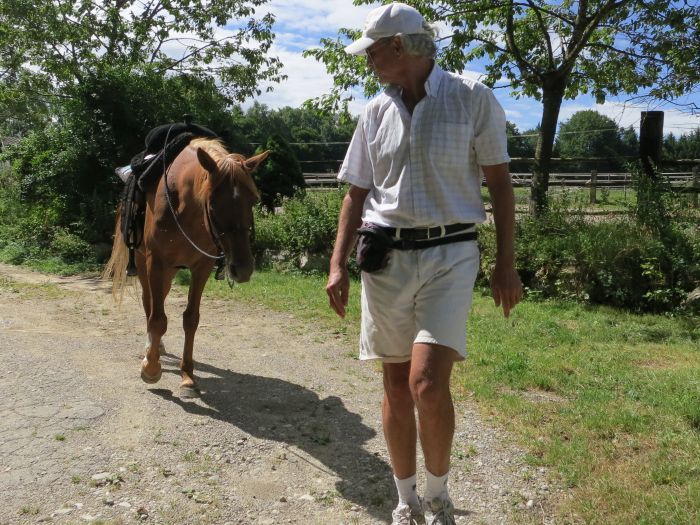 Denn unvorhersehbar kam alles anders. 12 Mal waren sie schon in Begleitung von befreundeten Reitern ausgeritten. Dann ging es zum ersten Mal für Gustl und Dhakir allein hinaus in Wald und Flur. Sie gingen im Schritt eine Forststraße entlang, als ein roter Radler heranbrauste. Dhakir bekam Angst und Gustl auch. Das war fatal. „Meine Panik übertrug sich auf Dhakir. Ein Pferd ergreift instinktiv die Flucht bei Gefahr. Dhakir ging durch und ich ließ mich bei voller Galoppgeschwindigkeit herunterfallen, bevor Dhakir ungebremst im Unterholz verschwand.“ Mit Schock und Prellungen blieb Gustl liegen. Der rote Radler war unterdessen längst fort. Wie schlimm der Sturz hätte ausgehen können, wenn Gustl nicht aus dem Steigbügel gekommen wäre. „Daran will ich gar nicht denken“, sagt er heute.