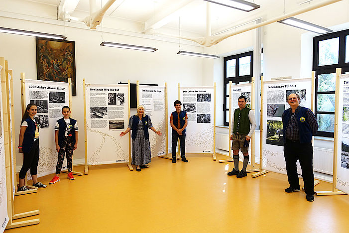 Die Ausstellung entstand im Rahmen des INTERREG-Projekts „Wege des Holzes“. Sie thematisiert die grenzübergreifende Geschichte der Holznutzung und Ökologie der Bergwälder in Bayern und Tirol auf zehn großen Tafeln. Die Themen im Überblick: 1. Über „Wege des Holzes“ – Projektbeschreibung; 2. Das Netzwerk - 16 Projektpartner in Bayern und Tirol; 3. „Das Holzen - Holznutzung einst und heute“; 4. Tausend Jahre „BAUM FÄLLT!“ - Historische Holznutzung; 5. „Der lange Weg ins Tal“ – Holztransport; 6. „Das Holz und die Dinge“ - Verwendung von Holz als Bau- und Brennstoff; 7. „Das Leben der Holzer“; 8. „Natura 2000“ - Das europäische Naturerbe gemeinsam erhalten; 9. „Lebensoase Totholz“; 10. „Treibholz - als Schatz der Artenvielfalt“.