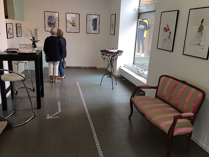 Die Ausstellung "Die Welt der Frau" der ägyptischen Karikaturistin Doaa El-Adl im Schwankl-Eck in der Altstadt in Wolfratshausen, Obermarkt 33. Zu sehen ist die Ausstellung bis Ende September.