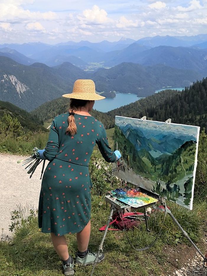 Die Künstlerin Stephanie Paula stellt ihre Bilder von Menschen, Landschaften und Szenen aus dem Zwei-Seen-Land am Samstag, den 05. September von 10.00 bis 17.00 Uhr unter freiem Himmel auf dem Herzogstand zu sehen.