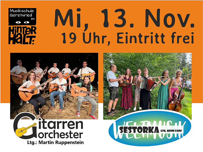 Sestorka & Gitarrenorchester - Weltmusik, POP & Klassik: Konzert im Hinterhalt Gelting – Eintritt frei. Die Musikerinnen freuen sich über Spenden.