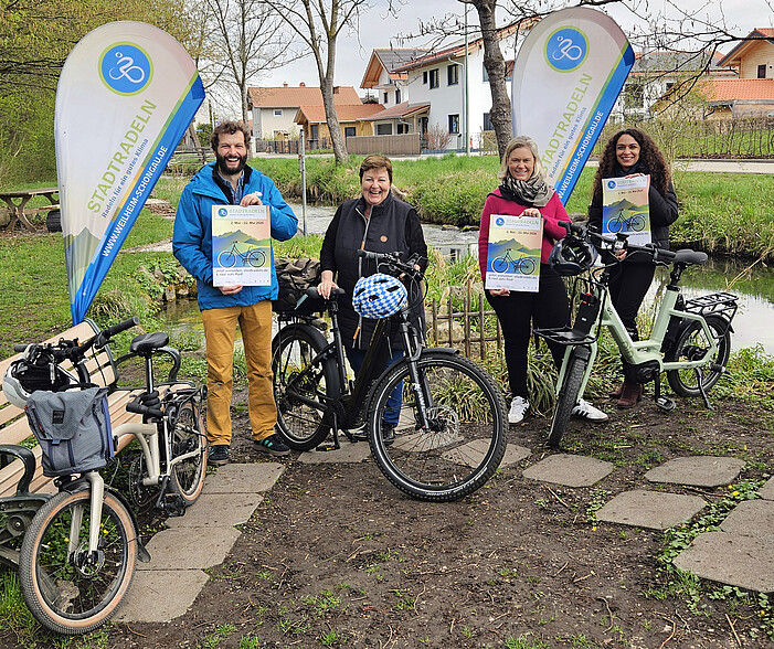 Bildunterschrift: Landrätin Andrea Jochner-Weiß mit Projektbeteiligten beim Start des STADTRADELN 2026. Credit: Landratsamt Weilheim-Schongau / Dominik Detert