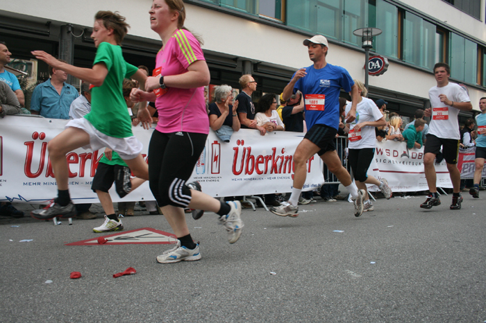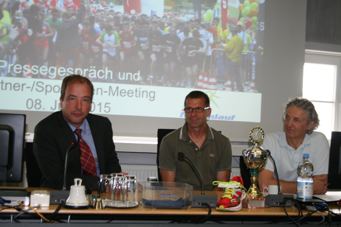 Bereits einen Tag vor Anmeldeschluss lagen Harald Brändle und Christian Walter vom Ausrichterteam cw running sport events über 2.600 Anmeldungen vor. „Aus Sicherheitsgründen werden wir aber nur rund 2.500 Läufer zulassen. Und erfahrungsgemäß springen immer wieder einige Läufer aus beruflichen oder privaten Gründen ab“, erklärte Walter bei einem Pressegespräch im Rathaus. Er rechnet damit, dass wie in den vergangenen Jahren etwa zehn Prozent kurzfristig absagen. Gelaufen wird ein rund fünf Kilometer langer Rundkurs. Um die schnellsten Athleten nicht zu beeinträchtigen, wird je nach Leistungsstärke in fünf verschiedenen Blöcken gestartet. So befinden sich beispielsweise die Nordic Walker am Ende der Starterfelds, damit sie mit ihren Stöcken nicht andere behindern. Die Teams können ihre Startunterlagen am Montag, den 15. Juni, von 11 bis 18.30 Uhr bei Intersport Utzinger in der Egerlandstraße 56 abholen. Wie im Vorjahr werden neben den personalisierten Startnummern auch Einweg-Chips – sogenannte Zeit-Transponder – ausgehändigt, die am Schnürsenkel eingefädelt werden müssen.