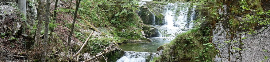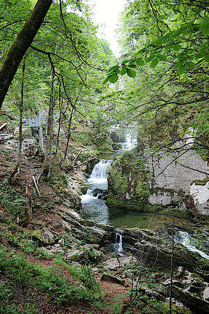 Wer mehr herabstürzendes Wasser sehen möchte, geht jetzt einfach noch etwa eine halbe Stunde zum Parkplatz Hufnagelstube hinauf. Von dort führt der Weg nach rechts etwa nochmals eine Viertelstunde bis zum Sibli-Fall mit mehr als zehn Metern Höhe.