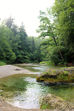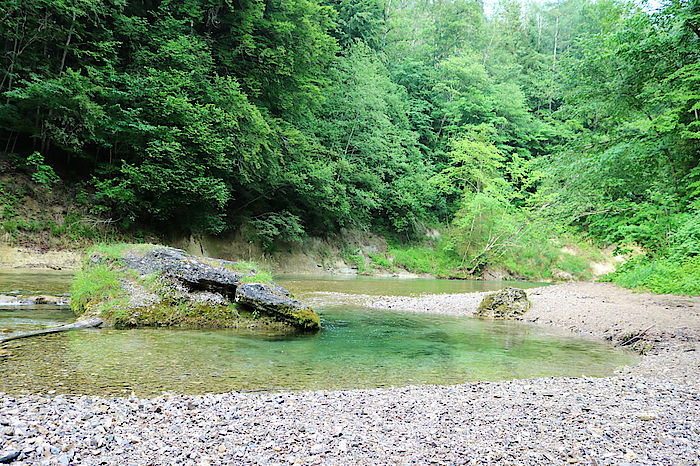 Bald wird der Weg schmaler, windet und schlängelt sich durch dichtes. Immer wieder führen Abstecher hinunter ans Mangfallufer zu verwunschenen Kiesbänken Manchmal scheint das Flüsschen träge und ganz ruhig dahin zu strömen. Dann gluckert das Wasser schneller über kleine Felsen. Am schönsten ist es, einfach nur stehen zu bleiben und die Landschaft auf sich wirken zu lassen. Nach etwa einer halben Stunde am Fluss entlang ist das Waldrestaurant Maxlmühle erreicht. Entweder können die Wanderer nun wieder direkt am Flußufernach Valley zurückstreifen oder alternativ auf dem so beschilderten, oberen Weg wieder bis zum Ausgangspunkt laufen.