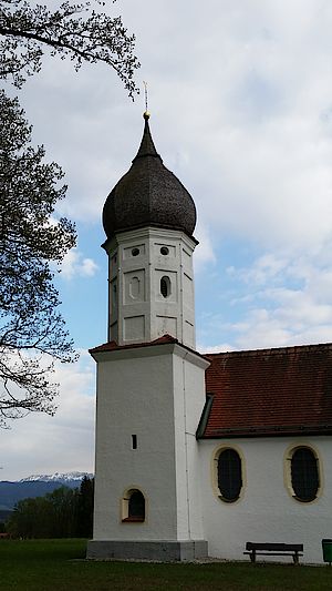 Bei der Kapelle zweigt ein Weg nach links in den Wald ab. Auf dem halten sich die Wanderer immer links bis sie wieder am Südufer des Hubersees auf eine freie Wiese stoßen. Über die geht es nun in südöstlicher Richtung hoch zur Alpenrosenstraße. Auf der geht es wieder links haltend ein kurzes Stück weiter südöstlich, ehe links wieder ein Fußweg zwischen den Häusern abzweigt. Aus dem Teerweg zu Beginn wird ein Kiesweg, der bis zum Kreisverkehr an der Seeshaupter Straße führt. Von dort zweigen die Wanderer in Richtung Südwesten in den Teerweg ab. Der geht in den Wanderweg zwischen Huber- und Kirnbergsee über. Am Campingplatz vorbei geht es wieder zurück zum Hubersee-Stüberl und den Ausgangspunkt der kleinen Tour. Eine Variante zweigt am Westufer des Kirnbergsees nach rechts ab. Durch Schilf und Wiesen führt ein Pfad ebenfalls zum Hubersee-Stüberl.