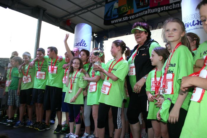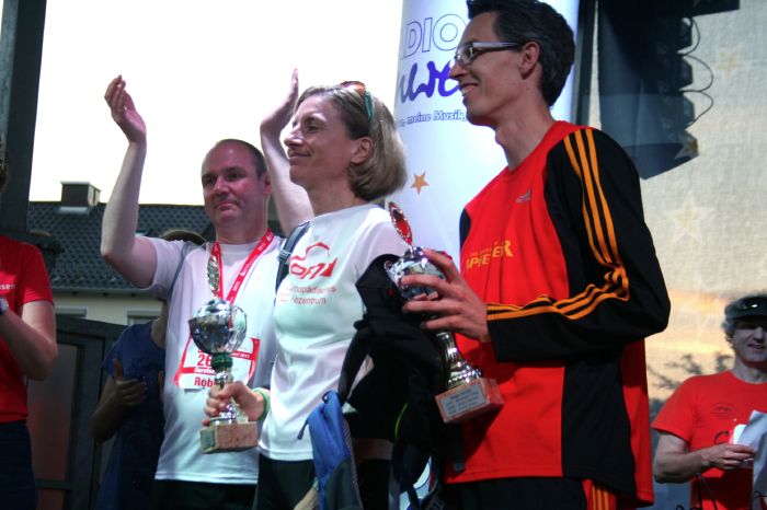 Bürgermeisterin Cornelia Irmer drückte ihrem Stadtteam, in dem unter anderem Dritter Bürgermeister Robert Lug und Ingrid Hammerschmied vom Städtischen Bauhof mit Nordic-Walking-Stöcken antraten, fest die Daumen. „Wenn ich die nicht anfeuere, legen die mir am nächsten Tag Reißnägel auf den Stuhl“, scherzte die Ratshauschefin. Die vielen mitlaufenden Schüler freuten sich indes darauf, dass die Lehrer ihnen am darauffolgenden Tag keine Prüfungen abverlangen würden. Den Leistungsnachweis erbrachten sie lieber auf der 5,3 km langen Strecke. Dass sich dort der favorisierte Penzberger Markus Brennauer vom New Fitness World Team mit einer Siegerzeit von 16:46 Minuten durchsetzte und die Iffeldorferin Mikki Heiss (OFZ) nach 19:16 Minuten als beste Frau einlief, war da fast Nebensache. Denn auch die letzten Läufer des riesigen Teilnehmerfelders, die erst nach über einer Stunde im Ziel ankamen, wurden frenetisch bejubelt.