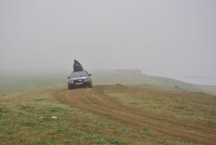 Nachdem wir zweimal wegen unserer Parkplatzwahl abgewiesen wurden, haben wir auf Umwegen eine werftähnliche Gegend entdeckt und zwischen vielen Booten geparkt. Unser Parkplatz schien wie die Einflugschneise der dortigen Schiffe. Der zuständige Wächter schien sich an unserem Parken nicht zu stören und wir beschlossen, dort zu übernachten. Allerdings unter Vorbehalt, weil wir uns der Ebbe- und Flutzeiten nicht ganz sicher waren. Ganze sechs Stunden ließ uns der Wächter sowie der langsam zunehmende Strom an Fischern schlafen. Um 6.30 Uhr klopfte es dann an unser Auto: Ein Fischer riet uns, schleunigst das Feld zu räumen - die Flut kam, und zwar gewaltig. Schlaftrunken irrten wir in der Dunkelheit herum, wurden dreimal des Platzes verwiesen (zweimal davon von Wächtern irgendeines Königspalastes) und fanden schließlich ein tolles Plätzchen zum Frühstücken. Wir ließen keine Langeweile aufkommen und fuhren unsere Rallyeautos etwas spazieren, mit Daniel als Passagier auf dem Autodach.