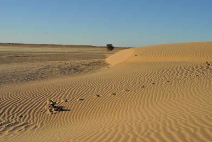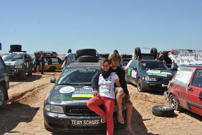 Team Scharf empfand die Wüstendurchquerung als ein sehr spannendes, intensives Erlebnis. Die Landschaft war grandios, obwohl die Konzentration durch die Hitze schon sehr beeinträchtigt wurde. Jeden Tag nach Sonnenuntergang bzw. nach Ankunft, fielen wir voller Zufriedenheit und erschöpft ins Bett. Kamele sahen wir leider nur in der Ferne, da die Motorengeräusche insgesamt einfach zu laut sind. Stefanie freute sich, eine Wüstenspringmaus auf der Flucht beobachten zu können und Daniel sah einige Eidechsen.