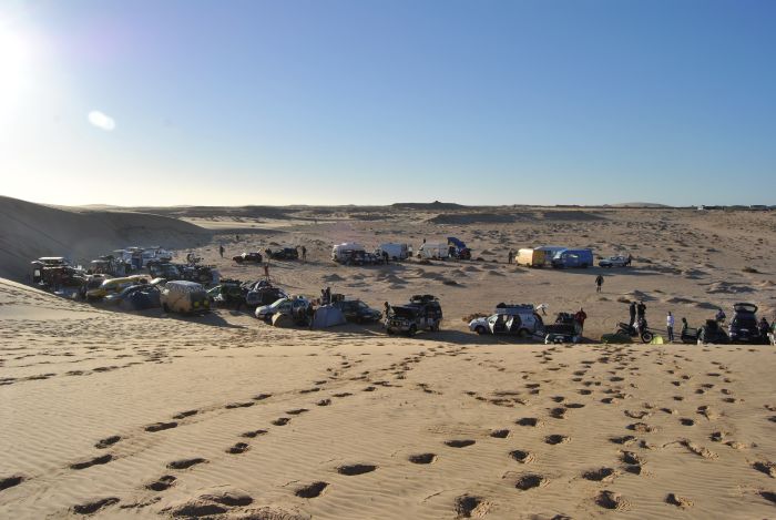 Unsere Outdoor-Übernachtungen waren alle sehr minimalistisch in wunderbarer Umgebung; zumeist an Dünen gelegen, ohne jegliche Sanitäranlagen oder sonstige Standards. Jedes Team war bezüglich seiner Versorgung auf sich selbst gestellt.