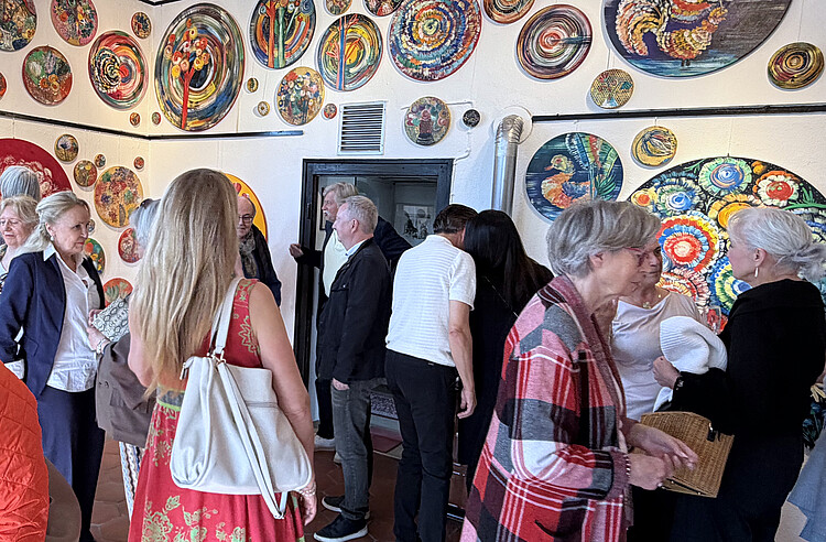 Irschenhausen, 23.4.2026 – Mit farbenstarker „Flower Power“ ist die Berliner Künstlerin Klio Karadim ins Hollerhaus zurückgekehrt. Neun Jahre nach ihrem letzten Besuch zeigt sie dort ihre neue Ausstellung „Im Kreis der Flora“. Zahlreiche Gäste kamen zur Vernissage.