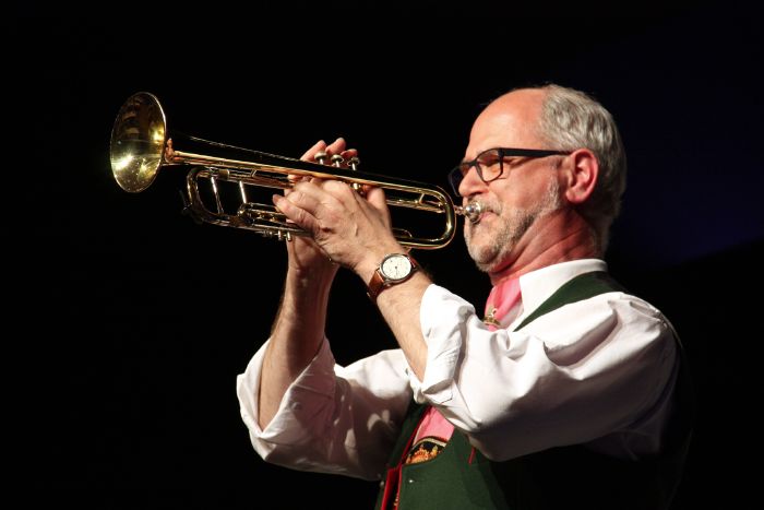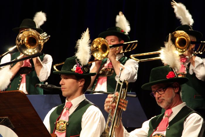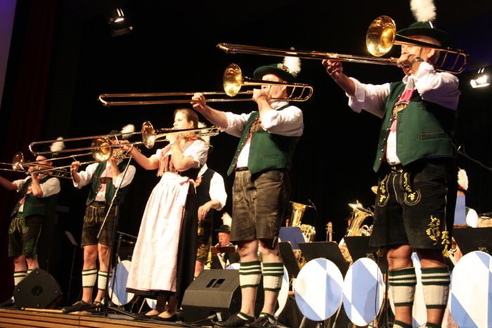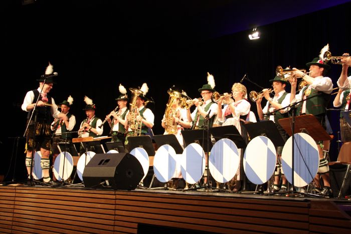 Seit 55 Jahren gibt es die Isartaler Blaskapelle, die aus der direkten Nachbarschaft Baierbrunn stammt. Inzwischen leitet Adi Stahuber Junior das fünfzehnköpfige Orchester. Während der Sohn oben dirigiert, saß der 85-jährige Senior und Gründer der Isartaler Blasmusik im Publikum und genoss das Konzert. Das taten übrigens auch die überwiegend zum älteren Semester gehörenden Zuschauer und zugegebenermaßen auch solche Gäste, die bisher noch wenig Zugang zur Blasmusik hatten. Denn die Isartaler könnte man durchaus auch als Bayerische Bigband bezeichnen. Bekannt wurden Adi Stahuber und die Isartaler in den Siebzigern als Oktoberfestband und durch viele Auftritte im Hofbräuhaus. Im Laufe der Jahrzehnte sind rund zwanzig Alben erschienen und auf der ganzen Welt waren die bayerischen Musiker in ihrer Tracht gern gesehene Gäste. Die Tracht von einst ist bis heute unverändert geblieben, das Programm unter der Leitung von Adi Stahuber Junior ist moderner geworden.