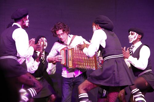 Geretsried, 8.10.2012 - Der Geretsrieder Kulturherbst 2012 präsentiert eine Attraktion nach der anderen. Der erfolgreichen Uraufführung von „Der Aufstand!“ (wir berichteten, mehr…) folgte als Weltpremiere die gemeinsame Aufführung der „Corroboration Gumboot Dance Company“ und den „NouWell Cousines“. Auf Einladung von Michael Well (Biermösl Blosn) und der Kulturbühne Hinterhalt Gelting gestalteten die südafrikanischen Tänzer gemeinsam mit den Musikern Maria Well, Maresa Well und Alexander Maschke einen mitreißenden Abend.