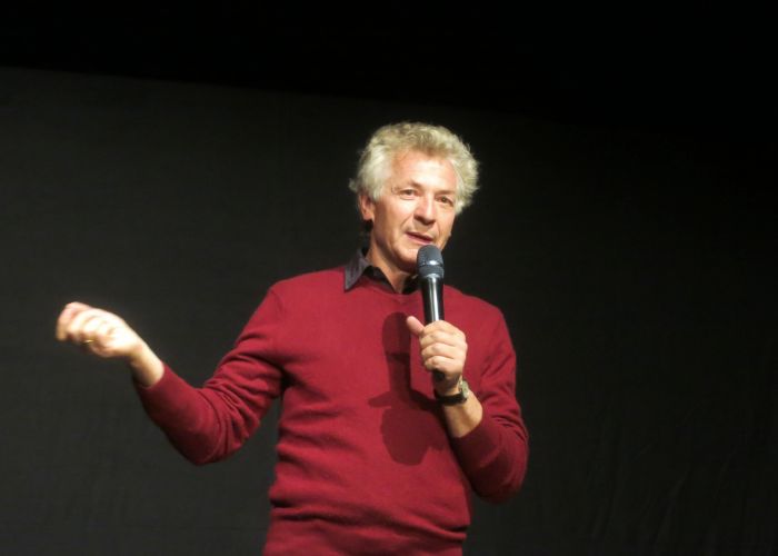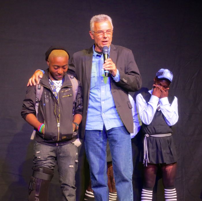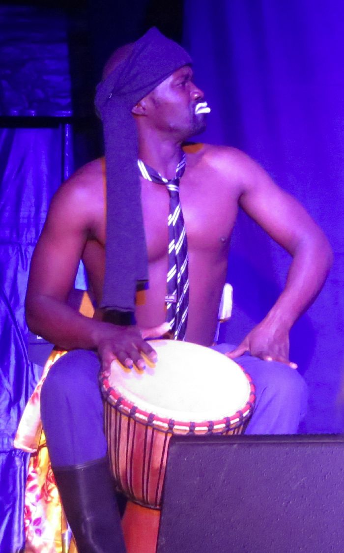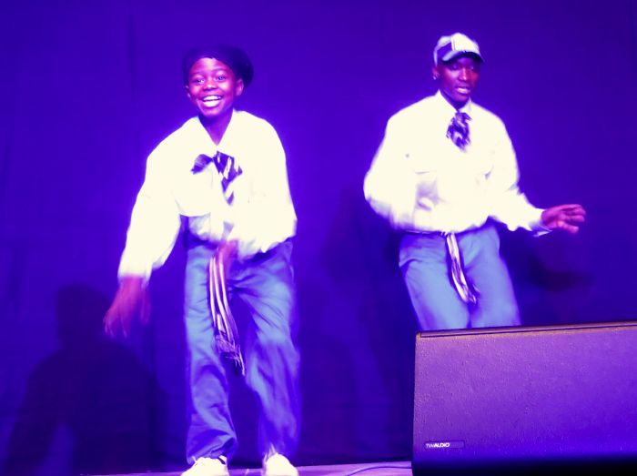 Zwischen den Stücken der „Corroboration Gumboot Dance Company“ und den „NouWell Cousines“ moderierte Veit Lennartz. Er versprach „einen ganz tollen, vor allem kontrastreichen Abend“. Lennartz war von 1994-99 Fernsehkorrespondent der ARD in Südafrika, während der Regierungszeit von Nelson Mandela. Er begleitet die Corroboration auf ihrer Tour mit ihrem neuen Programm. Mit ihrem Gummistiefeltanz haben sie in Südafrika bereits Preise gewonnen. Entstanden ist diese Tanzform in den Goldbergwerken Südafrikas während der Sklaverei – als Alternative zum verbotenen Trommeln und Sprechen. Die Arbeiter kommunizierten mit ihren Stiefeln, stampften auf den Boden und entwickelten so einen Code, um zu kommunizieren. Im Laufe der Zeit entwickelte sich diese Gummistiefel-Kommunikation zu einem Tanz. Die Tänzer können ganze Geschichten mit ihren Stiefeln erzählen.