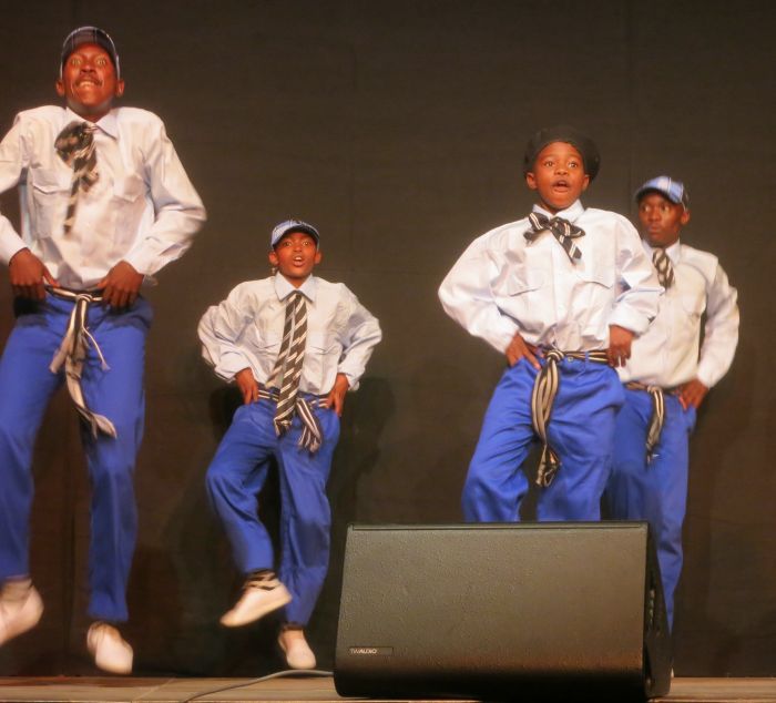 Die Tänze der Corroboration berichten von den Problemen der Minenarbeiter, davon wie man Bier trinkt, oder sich fürs Ausgehen herrichtet. Die Kostüme und die Gummistiefel variierten passend zu den gezeigten Themen, mal zebrafarbig, mal als blaue Schul- oder Arbeiteruniform. Der Gummistiefeltanz erinnert an eine Mischung von Stepptanz und Schuhplattler. „Halten Sie sich fest und schnallen Sie sich an“ stimmt Lennartz die Zuschauer ein vor dem modernen Pantsula, einem fetzigen südafrikanischen Hip-Hop, enstanden in den Townships. Mit ihren temperamentvollen und emotionalen Tänzen, untermalt von lautem Summen und Rufen der und Darsteller, kombiniert mit ausdrucksstarker Gestik und Mimik, begeisterten die Corroboration-Darsteller das Publikum.