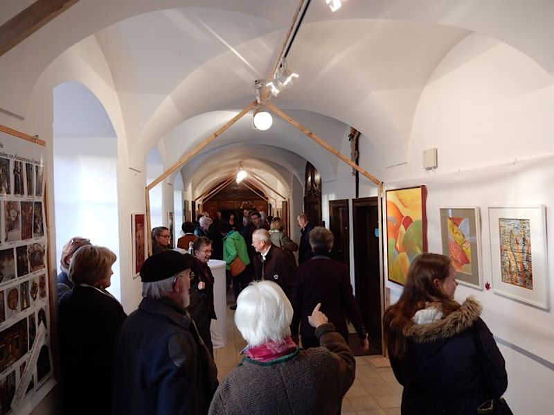 Zum ersten Mal öffnete das Kloster zudem am vergangenen Wochenende für eine Kunstausstellung. Die beiden Sachsenkamer Malerinnen Ruth Bien und Maria Boschner hatten gemeinsam die Idee entwickelt, mit einer Ausstellung den Sachsenkamer Verein der Freunde des Klosters Reutberg unterstützen zu wollen. Und welche Räume wären dafür besser geeignet als das Kloster selbst? Nach der Fürsprache des Vereinsvorsitzenden Gerald Ohlbaum willigten die Schwestern und Spiritual Monsignore Josef Beheim ein - „schließlich haben Kunst und Kirche eine lange, gemeinsame Tradition“, wie Beheim am Freitag bei der bestens besuchten Vernissage sagte.