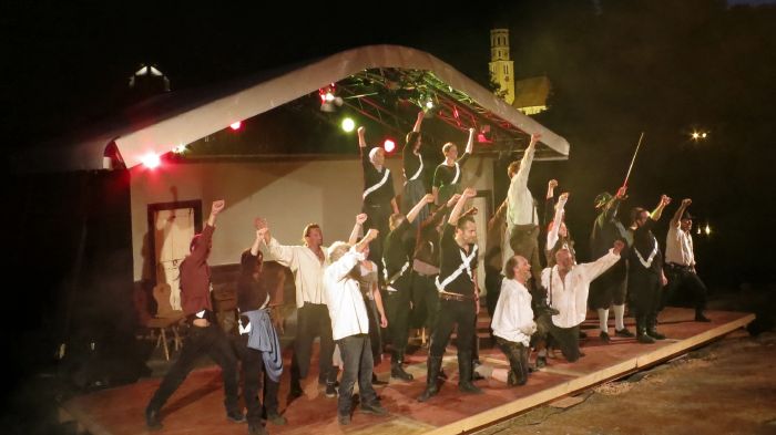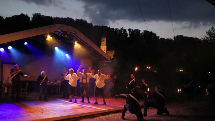 Wolfratshausen, 20.7.2013 - Packender, dichter und authentischer lässt sich der todesmutige, grausige und blutige Aufstand der Bauern im Oberland aus dem Jahr 1705 wohl kaum darstellen. Dieses Kunststück haben Günter Wagner und das ambitionierte Schauspieler- und Sänger-Ensemble mit der Revoluzzer-Oper „Aufstand“ unter der Regie von Harald Helfrich fertiggebracht.