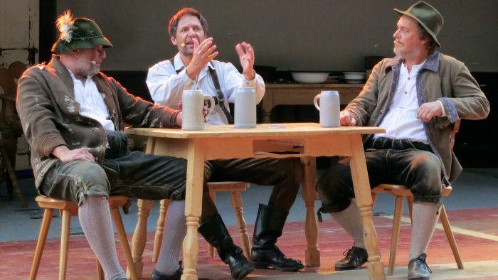 Es zählt zu den Kunstgriffen, dass Autor Günter Wagner den Bauernaufstand gegen die menschenverachtenden Habsburger an wenigen Figuren festmachte. So wurde die Übermacht der mordenden und marodierenden Truppen des habsburgischen Kaisers Joseph I. gegen die darbenden Untertanen – die Bauern - mehr als deutlich. Im Mittelpunkt steht die Familie Klinger, die durchaus aus Wolfratshausen stammen könnte. Denn auch hier erhoben sich die Mutigsten und versuchten, die Zweifler mitzureißen, um in der Nacht zum 25. Dezember 1705 gen München zu ziehen, die Habsburger zu stürzen und zu erreichen, dass Kurfürst Max Emanuel aus dem Exil zurückkommt, um „seine“ Bürger mit sanfter Hand und Liebe zur bayerischen Heimat zu regieren. Doch es ist die Frau Resi (Isabella Leicht) des Hauptdarstellers Jakob Klinger, die die Situation glasklar erfasst: „Es sind miserable Zeiten, wir haben nichts mehr zu essen, unser einziger Sohn wird eingezogen – wir müssen uns endlich wehren.“ Da erheben sich Klinger, dargestellt von dem aus Theater, Film und Fernsehen bekannten Schauspieler Winfried Frey, und seine zweifelnden Freunde Balthes (Matthias Eichholz) und Anton (Hermann Paetzmann), was in der Oper in einen mit rasantem Beat unterlegten Revoluzzersong gekleidet wird: „Pack‘ dein Leben beim Schopf! Bauer steh‘ auf! Lieber boarisch sterben, als kaiserlich verderben.“ Fast möchte man als Zuschauer mitsingen, den Bauern Mut machen.