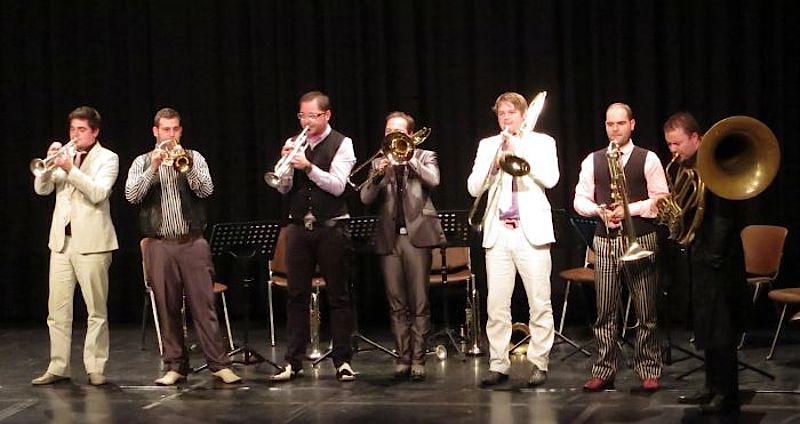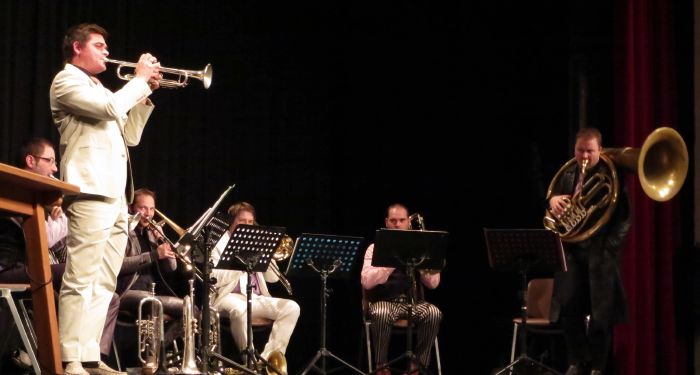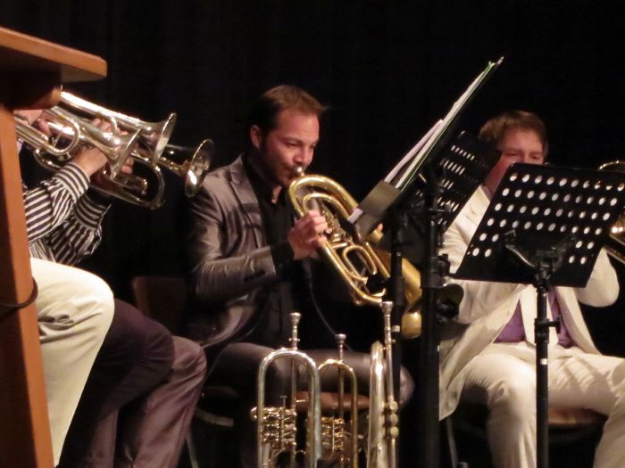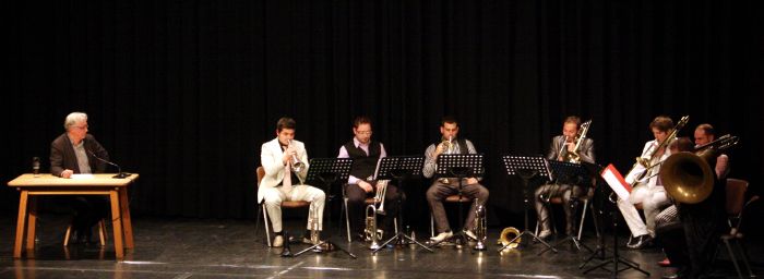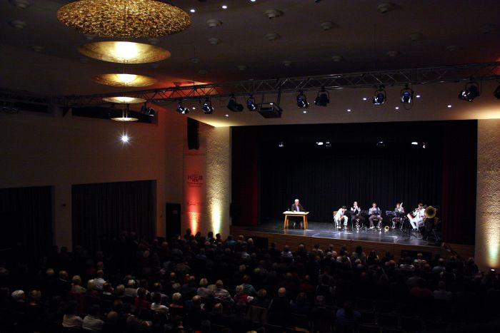 Zu jeder Geschichte, darunter auch der ominöse „Koffer“ von Peter Härtling spielte das Bläser-Ensemble „Da Blechhauf’n“ ein passendes Weihnachtslied dazu. Die acht jungen Bläser machten aus berühmte Liedern verjazzte Variationen zum Beispiel von „Morgen kommt der Weihnachtsmann“ oder „Still, still, still“. Es war eine kurzweilige Weihnachtslesung, die die Zuschauer zumindest an diesem Abend wieder einmal eintauchen ließ in eine ganz andere Weihnachtswelt, fern dem verkitschten Glanz und Glimmer von heute.