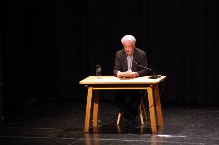 Gerd Anthoff las Weihnachtsgeschichten von Oskar Maria Graf aus seinem Buch „Die Weihnachtsgans“ vor. Es geht darin um Kindheitserinnerungen am Starnberger See. Graf beschreibt seine Gefühle während eines verpfuschten Theaterspielens und von den Bubenstreichen auf dem nächtlichen Weg zur altbayerischen Christmette. Anthoff, den man aus Serien wie „Den Bullen von Tölz“ kennt, konnte diesen Geschichten in bayerischer Mundart Leben einhauchen. Als würde man den kleinen Graf im dicken Janker und der langen Bundhose durch den Schnee laufen sehen, so versetzte sich Gerd Anthoff in die Erzählungen des Autors hinein. Das tat er genauso bei Erich Kästners Gedicht „Dezember“ und der Geschichte vom „Felix, der Senf holen ging“.