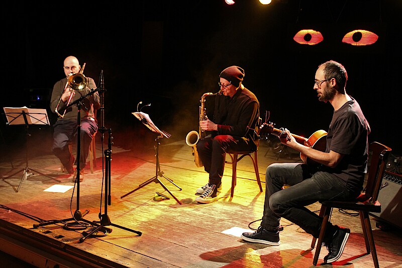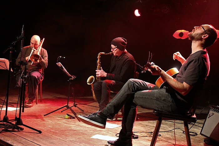 Geretsried-Gelting, 18.1.2022 – Dass eine Band auch ohne Gesang ein eindrucksvolles Konzert geben kann, bewiesen Gitarrist Benjamin Schäfer, Tenorsaxofonist Jörg Weber und Posaunist Matthias Götz bei einem Livestream-Auftritt in der Kulturbühne Hinterhalt. Das nach einem Song der amerikanischen Folkmusikerin Gillian Welch benannte „Acony Bell Trio" hofft nun auf weitere Auftrittsmöglichkeiten und will auch eine CD herausbringen.