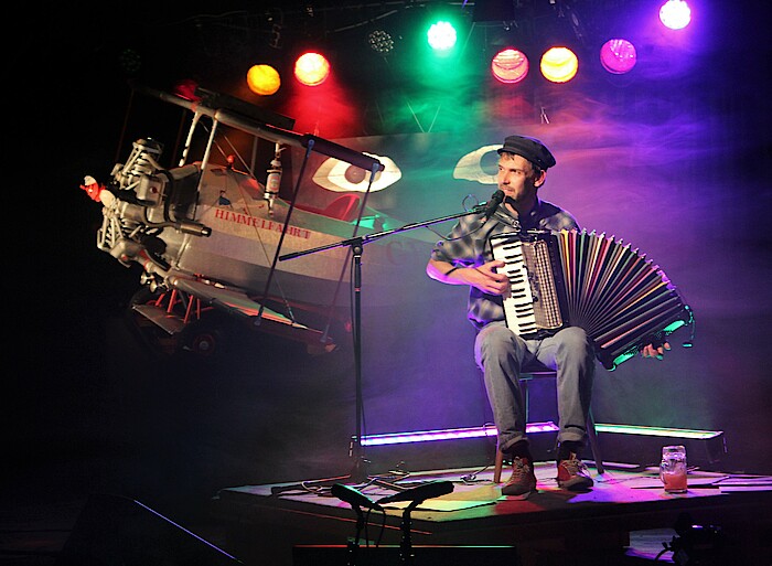 Pongratz in einem autobiografisch gefärbten Lied. Deshalb gründete der in Oberammergau aufgewachsene Musiker schon in jungen Jahren zusammen mit drei weiteren Mitstreitern die Gruppe Kofelgschroa, die bis zur einer selbstverordneten Bandpause im Jahr 2019 ähnlich wie die artverwandten LaBrassBanda auch große Hallen füllte. Mittlerweile konzentriert sich der zeitweise in Obergiesing lebende Maxi Pongratz auf seine Solokarriere. Der Titel des im Juni erscheinenden Albums „Musik für Flugräder“ passt gut zur aktuellen „Fluggesellschaft“-Dekoration der Kulturbühne. Darauf enthalten sind auch schnelle Akkordeon-Instrumentalstücke, zu denen manch einer gerne inmitten einer großen Menge ausgelassen tanzen würde.