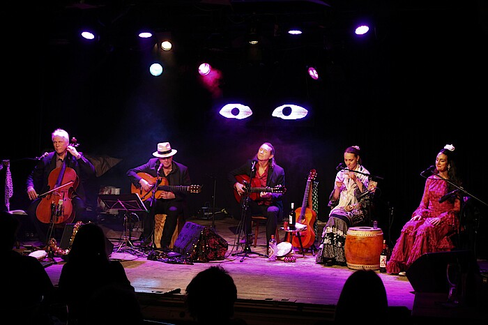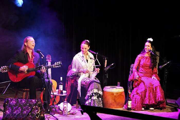 Geretsried-Gelting, 21.12.2021 – Eine musikalische Reise nach Südspanien „buchten" am vierten Adventswochenende die Besucher der Kulturbühne Hinterhalt. Flamenco-Gitarrist Ricardo Volkert erzählte andalusische Weihnachtsgeschichten, die er gemeinsam mit Tänzerinnen und Musikern in berührenden und mitreißenden Liedern vertonte.