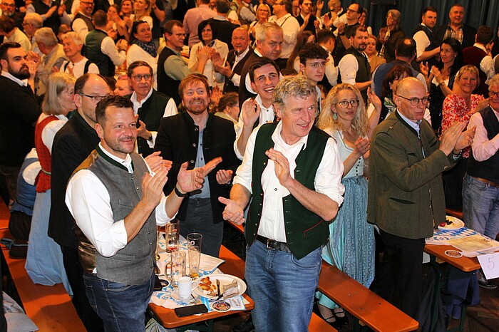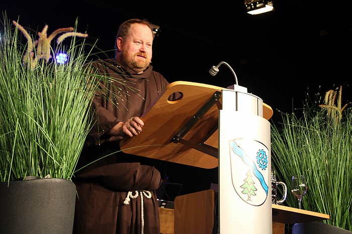 Zum diesjährigen Starkbierfest in Geretsried waren zu Gast Bundestagsabgeordneter Karl Bär, Landrat Josef Niedermaier und seine beiden Stellvertreter Thomas Holz und Klaus Koch sowie Bürgermeister aus den umliegenden Gemeinden. Einzig der Geretsrieder Bürgermeister Michael Müller fehlte. Es habe Terminüberschneidungen gegeben. Bruder Barnabas vergliech sich mit Landrat Josef Niedermaier. Der Tölzer sei wie er „ein Bäcker, der Klarinette spielt und sich ab und zu mit Bürgermeistern rumärgern muss“. Im Gegensatz zu Barnabas werde Niedermaier aber sogar noch verklagt. Nach einem ernsten Plädoyer für die Aufnahme von Flüchtlingen, denen geholfen werde müsse, erinnerte sich der Fastenprediger an den Besuch von Bundeskanzler Olaf Scholz auf dem Geltinger Geothermie-Bohrplatz. „Da wäre ich ja zu gern dabei gewesen. Ich hätte ihm dann nämlich einen Maßkrug gereicht und gesagt: Auf geht’s, Olaf. Cum. Ex.“, bedauerte er.