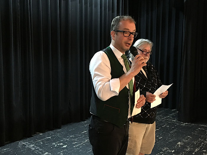 Pünktlich kamen die kleinen Künstler aus den Geretsrieder Kindergärten und -tagesstätten. Händchenhaltend und in Zweierreihen, von ihren Betreuerinnen begleitet, bis der Ratsstubensaal fast vollbesetzt war. Es gab Limo für die Kinder und am Ende noch Süßigkeiten als Überraschung, für ihr großes Engagement. Bürgermeister Michael Müller, Stadtrat und Künstler Volker Witte und Andrea Weber (Stellv. Vorsitzende des KIL Kulturvereins Isar-Loisach) eröffneten die Ausstellung und prämierten auf der großen Bühne die Gewinner der Alterskategorien. Freudig und aufgeregt übernahmen die kleinen Preisträger ihre Buchgutscheine und ein in Geretsrieder Wappenfarben verpackte Geschenkpäckchen. Überrascht war auch Bürgermeister Michael Müller, als der sechsjährigen Julius ihm seine gemalte Version vom Geretsrieder Rathaus überreichte. „Dein Bild bekommt einen Ehrenplatz in meinem Büro“, versprach Müller und war sichtlich gerührt.
