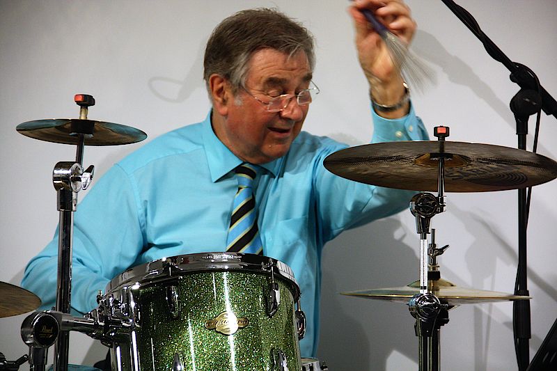 Donnelly und York spielten sich ihre Soloparts gegenseitig zu. Während der Mann mit dem Kahlkopf und der schwarzen Sonnenbrille sein immenses Klangrepertoire auf dem Saxofon präsentierte, verpasste York dem Swing, Blues und R&B mit ausgefeiltem Taktgefühl, starken Stopps und Rhythmuswechsel, den richtigen Drive. Beide Musiker sind echte Entertainer. Gags gehören mit dazu. Die Geretsrieder waren begeistert, als Pete York mit den Drumsticks so tat, als würde er Querflöte spielen, ohne den Rhythmusfluss zu unterbrechen.
