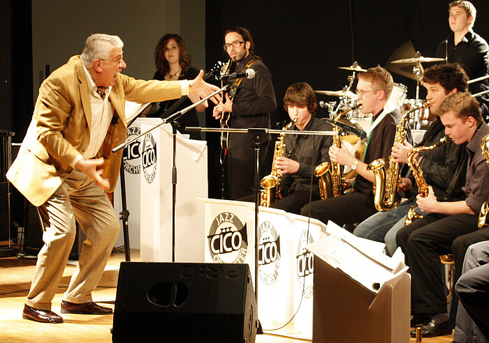 Horia-Dinu Nicoaelescu, Jahrgang 1941, studierte Musik und Chordirigat an der Musikhochschule in Bukarest. Weil der gelernte Trompeter heimlich mit anderen Musikern die damals in Rumänien verbotene amerikanische Jazzmusik spielte, geriet er mit dem Geheimdienst des damals kommunististischen Staats aneinander und wanderte 1971 mit seiner schwangeren Frau nach Nürnberg aus. „Ich konnte zunächst kaum Deutsch", erzählte Nicoalescu beim Pressegespräch im Rathaus. Dies änderte sich schnell. 1981 nahm er eine Stelle als Musiklehrer am Geretsrieder Gymnasium an und gründete später die Bigband, die er angelehnt an seinen Spitznamen Cico in Cicos Jazzorchester umbenannte. Daraus gingen so renommierte Musiker wie die Saxofonistin Stephanie Lottermoser, der Schlagzeuger Andreas Haberl und der Pianist Benedikt Jahnel hervor. Es folgten umjubelte Auftritte beim Süd-Ost-Jazzfestival 1998 in Bukarest und beim Jazz-Festival in Nicoalescus Geburtsstadt Craiova. „Heute bin ich ein adoptierter Bayer", lacht der Dirigent.