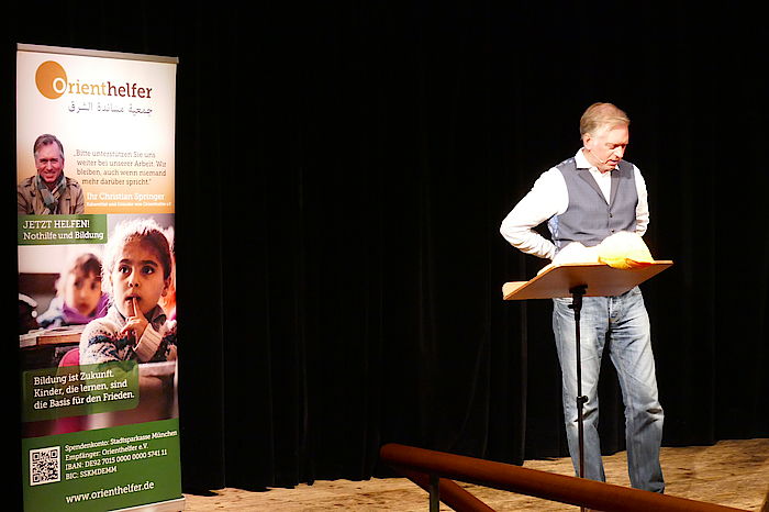 2012 gründete der gebürtige Münchner, Jahrgang 1964, seine Hilfsorganisation „Orienthelfer“. Mit einem roten Feuerwehrfahrzeug, vollgestopft mit Kuscheltieren, machte sich der bayerische Kabarettist auf den Weg zu den Menschen in das vom Bürgerkrieg gebeutelten Land Syrien. Daraus sind bis heute 30 Einsätze vor Ort geworden. „Glauben Sie mir, ich kenne jeden Winkel in diesem Land.“ Deutliche Worte fand Springer: „Wir schauen zu, wie Menschen im Mittelmeer ertrinken. Das gehört sich nicht als Europäer. Da sind wir Dreckbären.“ Von 70 Millionen Flüchtlingen auf dieser Erde, kämen gerade Mal sechs Prozent nach Deutschland. „Uns kommt das Geld zu den Ohren raus. Wir könnten noch viel mehr helfen.“