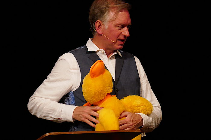 Gelting, 13.8.2020 – Es hat schon was vor Ort mit dabei zu sein, wenn der Live-Stream startet. Es ist immer ein Gefühl, wie bei einer Fernseh-Show. Bevor die Kamera live auf Sendung ist, gibt’s genaue Anweisungen. An diesem Abend ein kurzer, einstudierter „Beifall“. Für seinen unermüdlichen Einsatz humanitärer Hilfeleistung ist das wohl auch das Mindeste, was der bayerische Kabarettist Christian Springer verdient hat.