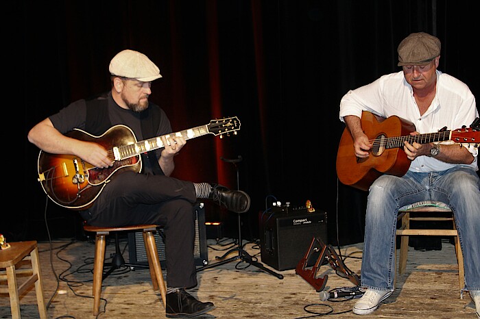 Am Gründonnerstag waren die beiden Gitarristen Titus Vollmer und Peter Schneider gemeinsam mit Sponsoren, Helfern und dem Dritten Geretsrieder Bürgermeister Gerhard Meinl zu Gast in der Kulturbühne. KIL-Mitglied Daniela Satzinger führte zuvor bei jedem Besucher einen Corona-Schnelltest durch. Nachdem Schneider und Vollmer die ungewöhnliche Pressekonferenz mit Gitarrenmusik eröffnet hatten, lobte Meinl den Kulturverein für sein Durchhaltevermögen und zitierte dabei den deutschen Philosophen Ernst Bloch (1885 – 1977): „Hoffnung ist Gewissheit, dass etwas Sinn hat, ohne Rücksicht darauf, wie es ausgeht“, sagte Meinl. Dass sich mit Kultur ohnehin kaum Geld verdienen lässt, betonte Hinterhalt-Eigentümer Wolf Steinberger. „Der Kauf der Kulturbühne war aus ökonomischer Sicht sicherlich die schlechteste Entscheidung meines Lebens, ich habe hier aber schon viele kulturelle Sternstunden erlebt“, räumte er ein.