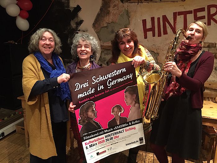 Die beiden Vorsitzenden Assunta Tammelleo (KIL), Dr. Sybille Krafft (Historischer Verein Wolfratshausen, Erinnerungsort Badehaus) sowie Hansi Greiner (Mitglied Historischer Verein Wor) haben ein hervorragendes Abendprogramm zusammengestellt. Im Fokus steht die Filmpräsentation „Drei Schwestern made in Germany“ von Regisseur Oliver Storz. Eine „Komödie aus finsterer Zeit“, wie sie Storz selbst formulierte. Dazu Ausschnitte aus einem BR-Interview mit dem Regisseur. Umrahmt wird der Filmabend mit der Musik des Beuerberger Saxofon-Ensembles „Saxema“ – mit Nina Ullrich (Tenor-Saxofon), Brigitte Martner (Bariton-Sax), Helmut Netter (Sopran-Sax) und Gastmusikerin Laura Forster (Klarinette) als Ersatz für Bandmitglied Sarah Majores (Alt-Sax).