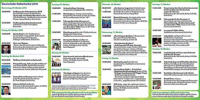 Vorschau auf den Geretsrieder Kulturherbst 2018 (4. bis 14. Oktober 2018)