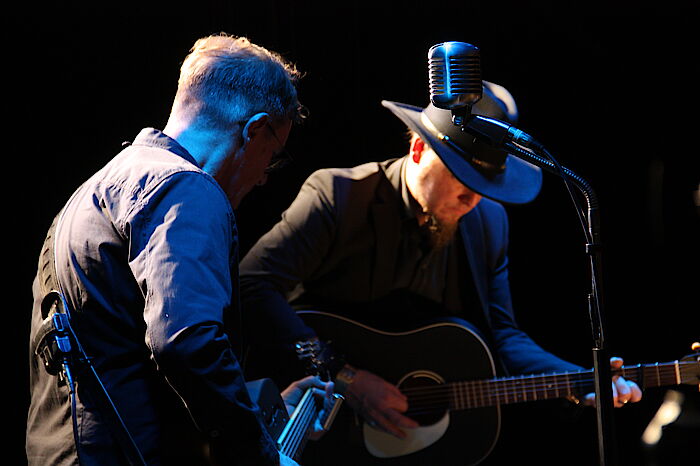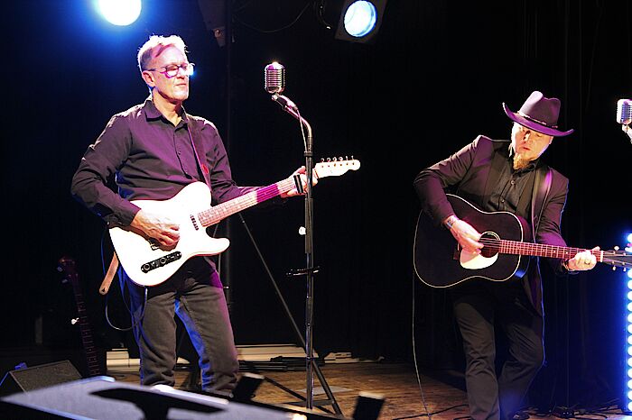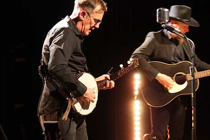 Ganz in Schwarz und mit Cowboyhut bekleidet, betrat Roman Hofbauer zunächst alleine die Kulturbühne. Der erste Song „Man in Black“ zeigte gleich, wohin die musikalische Reise ging. Sein Kompagnon Josef Baumgartner folgte ihm erst wenige Minuten später und bereicherte den Sound mit Fender-Resonator-Gitarre und Banjo. Zwischendurch erzählte Hofbauer Anekdoten zur Entstehungsgeschichte der einzelnen Songs - wie beispielsweise ein Whisky-Gelage von Cash und Nelson vor einem gemeinsamen Auftritt.
