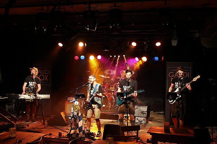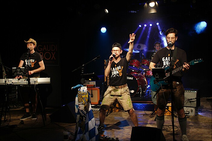 Geretsried-Gelting, 29.11.2021 - „Hurra, wir leben noch!", lautet das Motto des vom Kulturverein Isar-Loisach (KIL) veranstalteten PiPaPo-Festivals. Eine Vorgabe, die die Partyband Gaudibox am Freitagabend eindrucksvoll unter der Beweis stellte. Die wenigen Besucher, die beim Livestream in der Kulturbühne zugelassen waren, sangen die bekannten Cover-Hits von AC/DC bis STS begeistert mit und übertönten damit manchmal sogar die ohnehin schon laut aufspielenden Musiker.