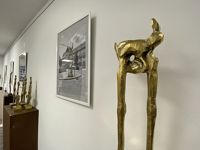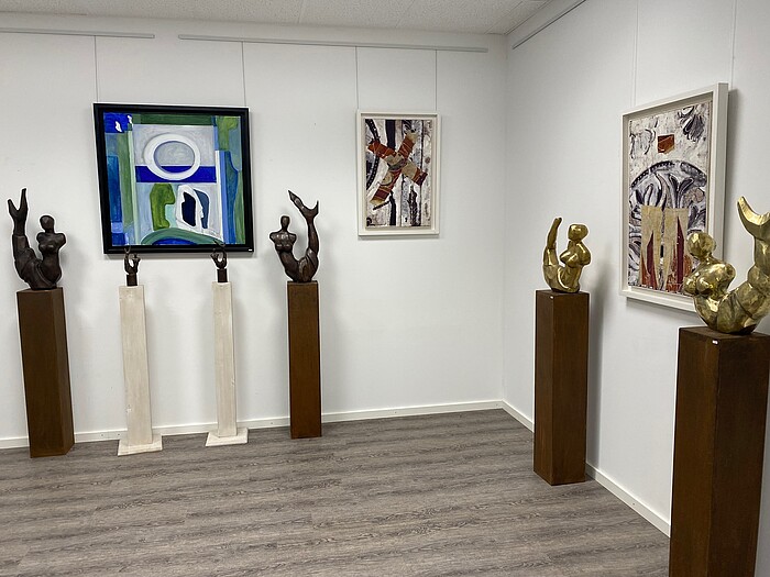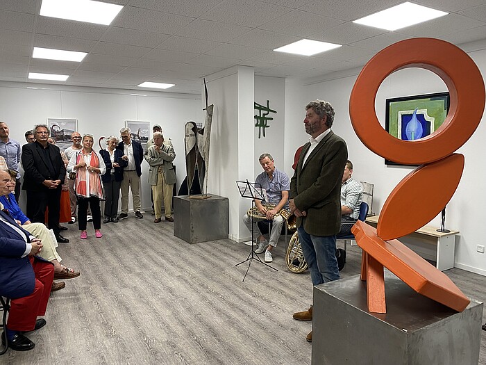 Dritter Bürgermeister Gerhard A. Meinl ergänzte: „Wir haben den Herren versprochen, dass sie die Ausstellungen weiter begleiten. So fühlen wir uns sicher, dass wir das gemeinsam stemmen können.“ 120 Exponaten in Acryl-, Tusche- und Mischtechnik sowie kleine bis Raumhohe Plastiken aus Bronze, Eisen, Messing und Holz zeigt der international agierende Künstler Josef Alexander Henselmann unter dem Titel „Skulpturen der Kulturen“. Musikalisch umrahmten die Mitglieder der Geretsrieder Musikschule Gerd Fink und Franz Hofer (beide Tenorhorn) mit bayerischer Musik, sowie die 15-jährige Sofia Kodeda im Sologesang bei Musical- und Popsong.