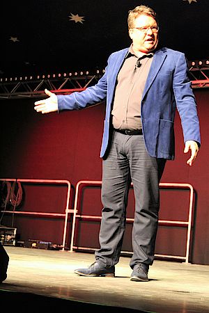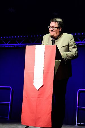 Geretsried, 10. 10. 2018 – Vor drei Jahren gewann er den Bayerischen Kabarettpreis, 2017 folgte die Auszeichnung mit dem „Salzburger Stier“. Nun präsentierte der auch aus dem Bayerischen Fernsehen bekannte Kabarettist Helmut Schleich im ausverkauften Geretsrieder Kulturherbstzelt sein aktuelles Programm „Kauf, du Sau!“.