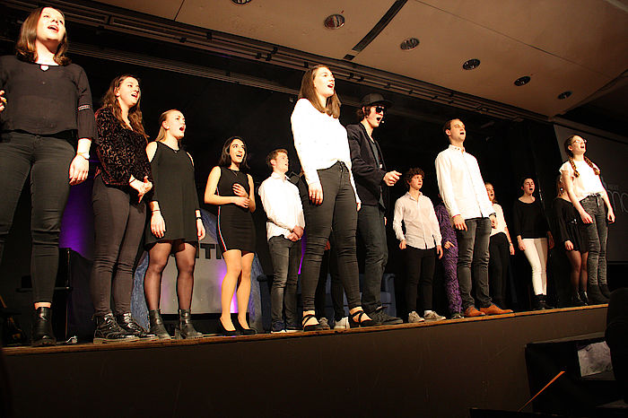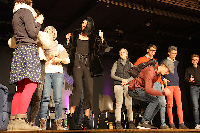 Um das Fazit gleich vorweg zu nehmen: Das Geretsrieder Pendant war großartig und aufwendig inszeniert. Die Lehrer als Model-Kandidaten beim Casting – parodiert von Schülern und Schülerinnen – waren herrlich komödiantisch und manche sogar durchaus talentiert. Zwischen den Filmbeiträgen der Motto-Fotoshootings, die auf den Studienfahrten nach Rom und Griechenland entstanden sowie auf einer Alpenüberquerung von Obersdorf nach Meran, unterhielten musikalische Live-Acts, Interviews mit den Kandidaten und Szenen aus den Styling-Studios. Das Super-Model Jorge González, parodiert von Baran Dereli, kam als Gaststar und posierte auf hochhackigen Plateau-Waffen. Simon Hammerschmied und Daniel Scherer führten durch einen bunten und höchst unterhaltsamen Abend, in denen natürlich viele Späßchen über das vergangene Schuljahr eingebaut war. Doch die Entscheidung, wer am Ende das erste Geretsrieder Topmodel wurde, blieb offen. Also darf man gespannt bis zur nächsten Staffel gespannt sein.