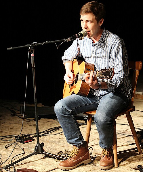 Die coronabedingten Konzertausfälle der vergangenen Monate machten den 28-Jährigen, der seit etwa vier Jahren unter seinem Künstlernahmen "Oimara" auftritt, vor seiner CD-Präsentation in der Kulturbühne Hinterhalt etwas nervös. Fast schüchtern setzte er sich zunächst auf einen Holzstuhl und stimmte auf seiner Gitarre den ersten Song „Heid is ma wurschd“ an. Die anfängliche Unsicherheit währte indes nur kurz. In bester Fredl-Fesl-Manier erzählte der auf einer Tegernseer Alm aufgewachsene Oimara daraufhin Geschichten aus seiner noch gar nicht so lange zurückliegenden Jugend, die die Entstehung von Songs wie „Stammtisch“, „Lieblingsdepp“ oder „Disco Kathi“ maßgeblich geprägt haben. Letztere lernte er einst während einer durchzechten Nacht in der derzeit geschlossenen Rottacher Musikkneipe „Quantum“ kennen. „Das Lied habe ich dann am nächsten Tag noch im Katerstadium geschrieben“, gestand der Tegernseer.