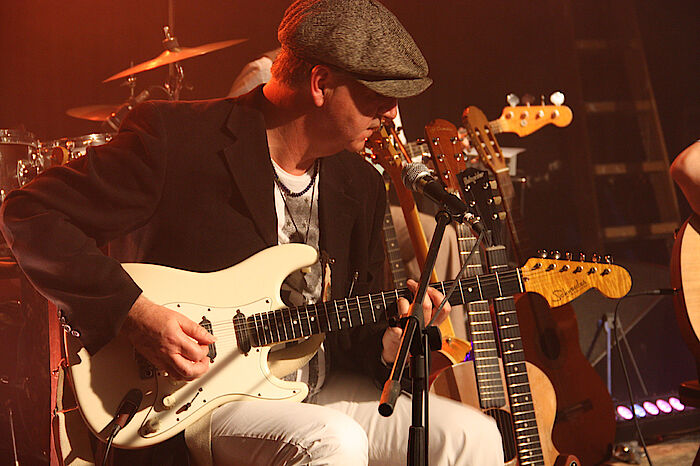 Geretsried-Gelting, 10.3.2021 – Die Münchner Funk-Reggae-Ska-Band "The Stimulators" kommen jährlich zu einem Auftritt in die Kulturbühne Hinterhalt. Wie oft sie schon da waren, kann Bandleader und Gitarrist Peter Schneider selbst nicht benennen. Dieses Mal aber hatten sie brandneue Songs im Gepäck vom neuen Album „Travelogue“, zu Deutsch, ein Fahrtenbuch durch die Musikstile der Welt. Und es gab am Samstagabend noch eine Premiere. Die Stimulators bespielten erstmals die neue „große Bühne“ im Hinterhalt. Übers Wochenende wurde der Live-Stream auf Youtube bereits knapp 1000 Mal abgerufen.